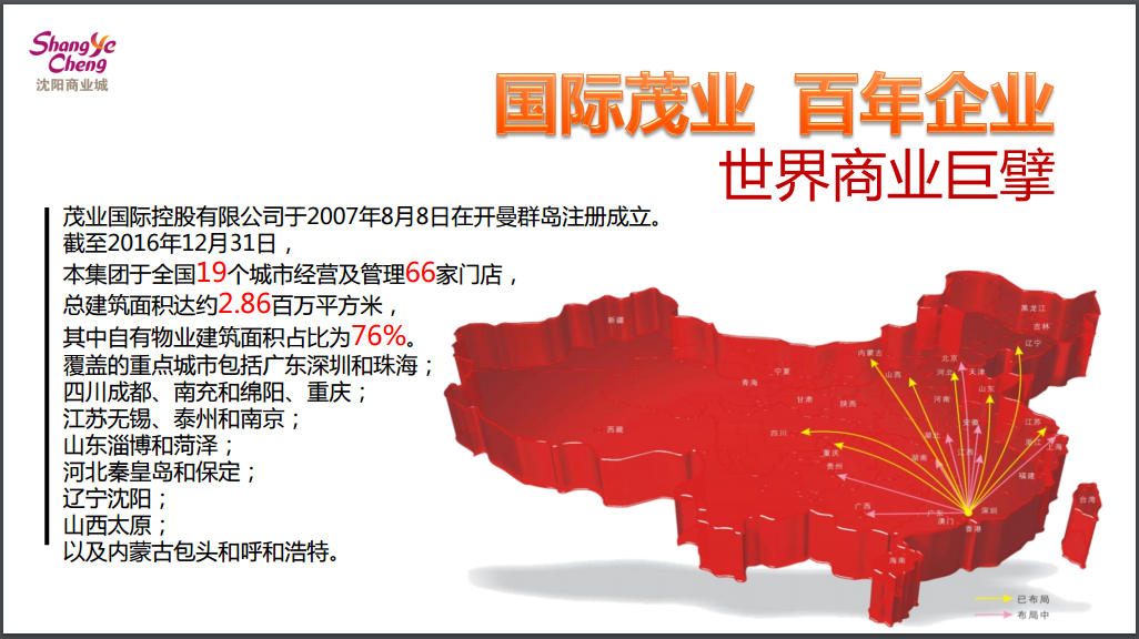 钟总在向与会嘉宾介绍茂业国际旗下零售、地产、酒店、物业4大支柱产业,全国五大区域30个中心城市战略布局的同时,重点推介了以沈阳爱游戏ayx官方网页为代表的沈阳区域5家重点商业及地产项目。